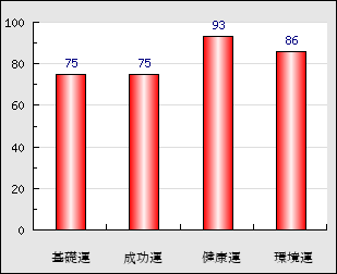 成功運 目的に対する成功運の強さをあらわします。この点数が高いほど自分の思い通りに成功し、逆に悪いと逆境・批判・障害などに苦心します。 75点