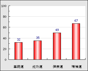 環境運 家庭や職場等での援助運・環境運を司ります。これが良いと配偶者や子供・職場の同僚などから助力が得られやすく、悪いと波乱・不和・孤独などがあります。 67点