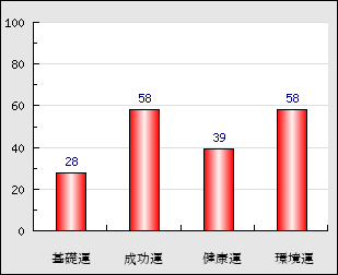 環境運 家庭や職場等での援助運・環境運を司ります。これが良いと配偶者や子供・職場の同僚などから助力が得られやすく、悪いと波乱・不和・孤独などがあります。 58点