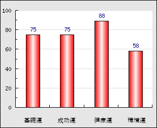 成功運 目的に対する成功運の強さをあらわします。この点数が高いほど自分の思い通りに成功し、逆に悪いと逆境・批判・障害などに苦心します。 75点