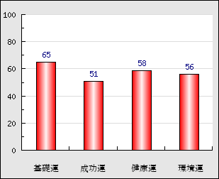 成功運 目的に対する成功運の強さをあらわします。この点数が高いほど自分の思い通りに成功し、逆に悪いと逆境・批判・障害などに苦心します。 51点