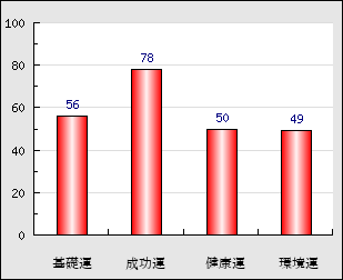 環境運 家庭や職場等での援助運・環境運を司ります。これが良いと配偶者や子供・職場の同僚などから助力が得られやすく、悪いと波乱・不和・孤独などがあります。 49点