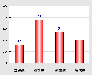 環境運 家庭や職場等での援助運・環境運を司ります。これが良いと配偶者や子供・職場の同僚などから助力が得られやすく、悪いと波乱・不和・孤独などがあります。 40点