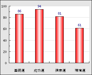 成功運 目的に対する成功運の強さをあらわします。この点数が高いほど自分の思い通りに成功し、逆に悪いと逆境・批判・障害などに苦心します。 94点