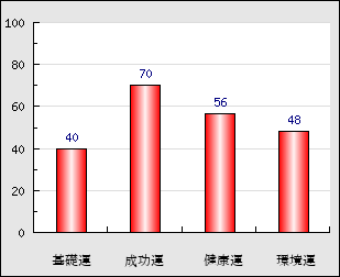 成功運 目的に対する成功運の強さをあらわします。この点数が高いほど自分の思い通りに成功し、逆に悪いと逆境・批判・障害などに苦心します。 70点