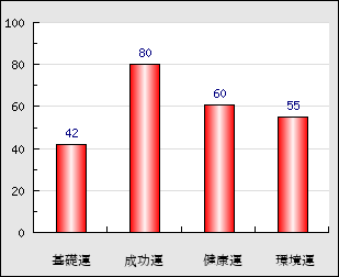 成功運 目的に対する成功運の強さをあらわします。この点数が高いほど自分の思い通りに成功し、逆に悪いと逆境・批判・障害などに苦心します。 80点