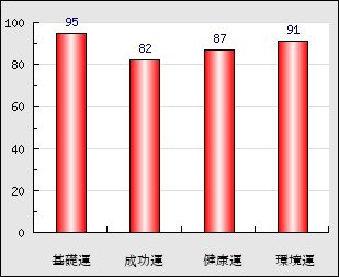 環境運 家庭や職場等での援助運・環境運を司ります。これが良いと配偶者や子供・職場の同僚などから助力が得られやすく、悪いと波乱・不和・孤独などがあります。 91点