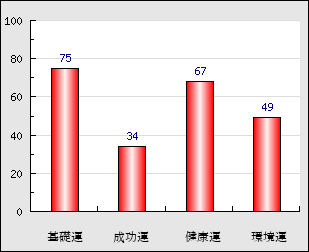環境運 家庭や職場等での援助運・環境運を司ります。これが良いと配偶者や子供・職場の同僚などから助力が得られやすく、悪いと波乱・不和・孤独などがあります。 49点