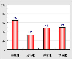 環境運 家庭や職場等での援助運・環境運を司ります。これが良いと配偶者や子供・職場の同僚などから助力が得られやすく、悪いと波乱・不和・孤独などがあります。 49点