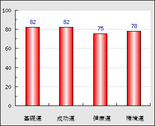 環境運 家庭や職場等での援助運・環境運を司ります。これが良いと配偶者や子供・職場の同僚などから助力が得られやすく、悪いと波乱・不和・孤独などがあります。 78点