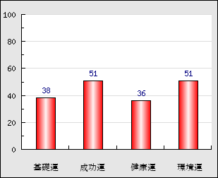環境運 家庭や職場等での援助運・環境運を司ります。これが良いと配偶者や子供・職場の同僚などから助力が得られやすく、悪いと波乱・不和・孤独などがあります。 51点