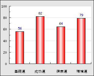 環境運 家庭や職場等での援助運・環境運を司ります。これが良いと配偶者や子供・職場の同僚などから助力が得られやすく、悪いと波乱・不和・孤独などがあります。 79点