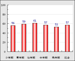 | 中年期 | 50~65歳頃 | 57点 0.0 |