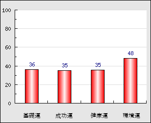 環境運 家庭や職場等での援助運・環境運を司ります。これが良いと配偶者や子供・職場の同僚などから助力が得られやすく、悪いと波乱・不和・孤独などがあります。 48点