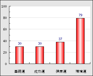 成功運 目的に対する成功運の強さをあらわします。この点数が高いほど自分の思い通りに成功し、逆に悪いと逆境・批判・障害などに苦心します。 30点