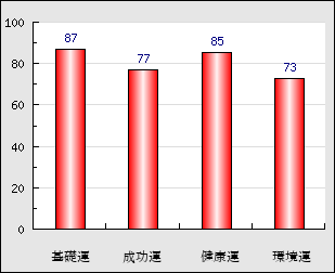 環境運 家庭や職場等での援助運・環境運を司ります。これが良いと配偶者や子供・職場の同僚などから助力が得られやすく、悪いと波乱・不和・孤独などがあります。 73点