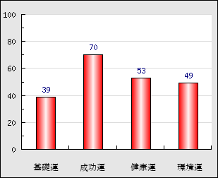 成功運 目的に対する成功運の強さをあらわします。この点数が高いほど自分の思い通りに成功し、逆に悪いと逆境・批判・障害などに苦心します。 70点