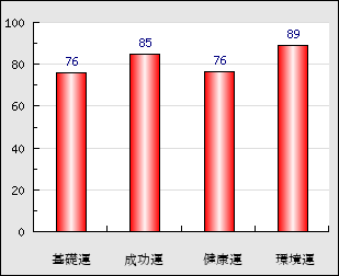 環境運 家庭や職場等での援助運・環境運を司ります。これが良いと配偶者や子供・職場の同僚などから助力が得られやすく、悪いと波乱・不和・孤独などがあります。 89点