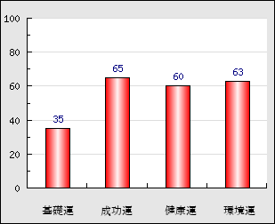 成功運 目的に対する成功運の強さをあらわします。この点数が高いほど自分の思い通りに成功し、逆に悪いと逆境・批判・障害などに苦心します。 65点