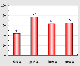 成功運 目的に対する成功運の強さをあらわします。この点数が高いほど自分の思い通りに成功し、逆に悪いと逆境・批判・障害などに苦心します。 77点