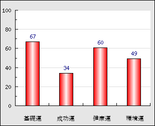 環境運 家庭や職場等での援助運・環境運を司ります。これが良いと配偶者や子供・職場の同僚などから助力が得られやすく、悪いと波乱・不和・孤独などがあります。 49点
