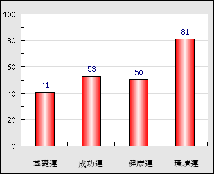 環境運 家庭や職場等での援助運・環境運を司ります。これが良いと配偶者や子供・職場の同僚などから助力が得られやすく、悪いと波乱・不和・孤独などがあります。 81点