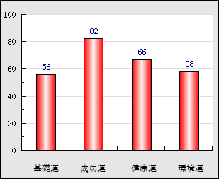 成功運 目的に対する成功運の強さをあらわします。この点数が高いほど自分の思い通りに成功し、逆に悪いと逆境・批判・障害などに苦心します。 82点