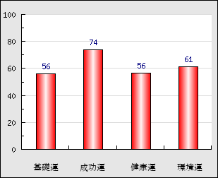 環境運 家庭や職場等での援助運・環境運を司ります。これが良いと配偶者や子供・職場の同僚などから助力が得られやすく、悪いと波乱・不和・孤独などがあります。 61点