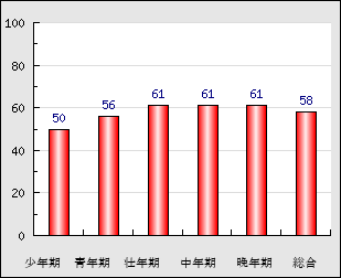 | 中年期 | 50~65歳頃 | 61点+ 3.0 |