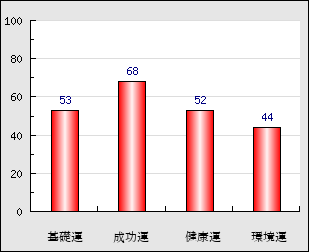成功運 目的に対する成功運の強さをあらわします。この点数が高いほど自分の思い通りに成功し、逆に悪いと逆境・批判・障害などに苦心します。 68点
