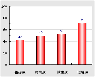 環境運 家庭や職場等での援助運・環境運を司ります。これが良いと配偶者や子供・職場の同僚などから助力が得られやすく、悪いと波乱・不和・孤独などがあります。 71点
