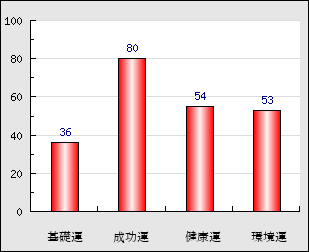 成功運 目的に対する成功運の強さをあらわします。この点数が高いほど自分の思い通りに成功し、逆に悪いと逆境・批判・障害などに苦心します。 80点