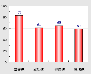 成功運 目的に対する成功運の強さをあらわします。この点数が高いほど自分の思い通りに成功し、逆に悪いと逆境・批判・障害などに苦心します。 61点