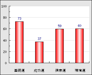 成功運 目的に対する成功運の強さをあらわします。この点数が高いほど自分の思い通りに成功し、逆に悪いと逆境・批判・障害などに苦心します。 37点