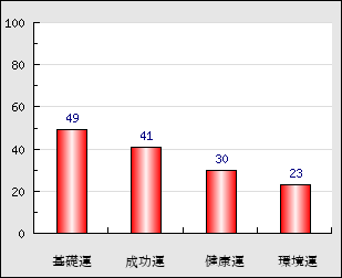 成功運 目的に対する成功運の強さをあらわします。この点数が高いほど自分の思い通りに成功し、逆に悪いと逆境・批判・障害などに苦心します。 41点