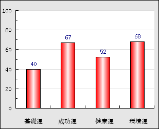 環境運 家庭や職場等での援助運・環境運を司ります。これが良いと配偶者や子供・職場の同僚などから助力が得られやすく、悪いと波乱・不和・孤独などがあります。 68点