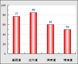 環境運 家庭や職場等での援助運・環境運を司ります。これが良いと配偶者や子供・職場の同僚などから助力が得られやすく、悪いと波乱・不和・孤独などがあります。 50点