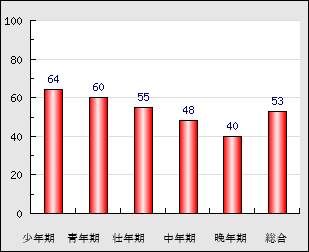 | 中年期 | 50~65歳頃 | 48点- 5.0 |