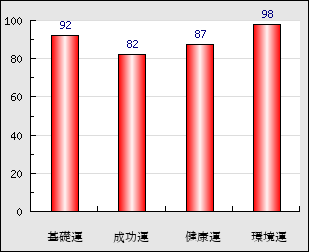 環境運 家庭や職場等での援助運・環境運を司ります。これが良いと配偶者や子供・職場の同僚などから助力が得られやすく、悪いと波乱・不和・孤独などがあります。 98点