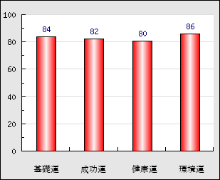 環境運 家庭や職場等での援助運・環境運を司ります。これが良いと配偶者や子供・職場の同僚などから助力が得られやすく、悪いと波乱・不和・孤独などがあります。 86点
