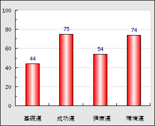 環境運 家庭や職場等での援助運・環境運を司ります。これが良いと配偶者や子供・職場の同僚などから助力が得られやすく、悪いと波乱・不和・孤独などがあります。 74点