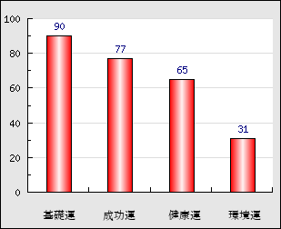 環境運 家庭や職場等での援助運・環境運を司ります。これが良いと配偶者や子供・職場の同僚などから助力が得られやすく、悪いと波乱・不和・孤独などがあります。 31点