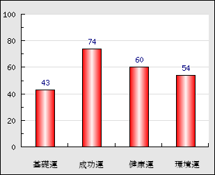 成功運 目的に対する成功運の強さをあらわします。この点数が高いほど自分の思い通りに成功し、逆に悪いと逆境・批判・障害などに苦心します。 74点