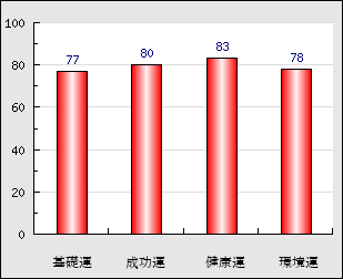 環境運 家庭や職場等での援助運・環境運を司ります。これが良いと配偶者や子供・職場の同僚などから助力が得られやすく、悪いと波乱・不和・孤独などがあります。 78点
