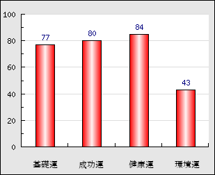 成功運 目的に対する成功運の強さをあらわします。この点数が高いほど自分の思い通りに成功し、逆に悪いと逆境・批判・障害などに苦心します。 80点