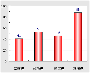 環境運 家庭や職場等での援助運・環境運を司ります。これが良いと配偶者や子供・職場の同僚などから助力が得られやすく、悪いと波乱・不和・孤独などがあります。 88点