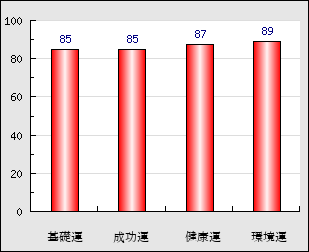 成功運 目的に対する成功運の強さをあらわします。この点数が高いほど自分の思い通りに成功し、逆に悪いと逆境・批判・障害などに苦心します。 85点