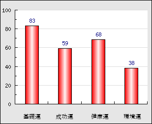 環境運 家庭や職場等での援助運・環境運を司ります。これが良いと配偶者や子供・職場の同僚などから助力が得られやすく、悪いと波乱・不和・孤独などがあります。 38点