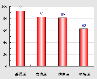 環境運 家庭や職場等での援助運・環境運を司ります。これが良いと配偶者や子供・職場の同僚などから助力が得られやすく、悪いと波乱・不和・孤独などがあります。 63点