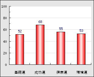 環境運 家庭や職場等での援助運・環境運を司ります。これが良いと配偶者や子供・職場の同僚などから助力が得られやすく、悪いと波乱・不和・孤独などがあります。 53点